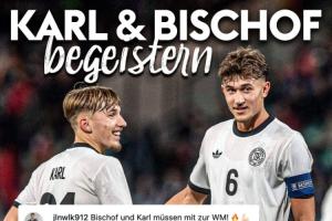 此役,来自拜仁的双子星卡尔和比朔夫贡献了极佳的表现:17岁的卡尔首次入选德国U21,本场比赛贡献2球。20岁的比朔夫更是担任德国队的场上队长,贡献3球1助。在数据机构Sofascore的赛后评分中,二人均得到了10分满分。