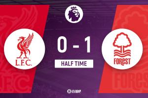 半场-利物浦暂0-1森林 穆里略破门引争议热苏斯进球被吹手球无效