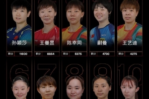 女子单打,中国队球员孙颖莎、王曼昱、陈幸同、蒯曼、王艺迪位列前五,陈熠位列第九。