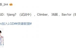 体育资讯12月5日讯 今日,爆料人“恋恋红茶”透露LGD新赛季阵容:1jiang?(试训中) ,Climber, 汤圆 ,Sav1or(Shaoye) ,Ycx!不保熟!