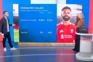 体育资讯12月8日讯 据天空体育统计,萨拉赫本赛季的每90分钟跑动要多于上赛季。