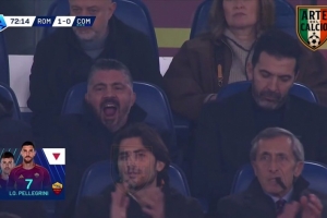 除了帕雷德斯以外,意大利的代表团也出现在了罗马1-0科莫的比赛现场,主帅加图索和领队布冯都在看台上观看了比赛。