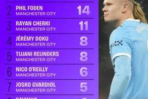 曼城球员本赛季各项赛事直接参与进球数据