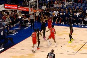 上一篇: 扣爽了!亨特吊球篮下莫布里 后者空中被打头仍然将球扣进