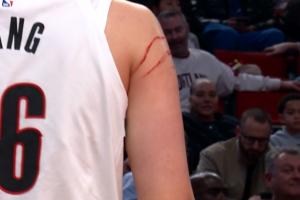 下场后队医给杨瀚森清理下伤口