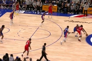 GIF-哈登又被断 奥萨尔轻松扣篮