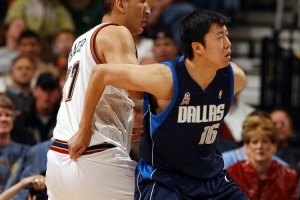 2001-02赛季王治郅为独行侠出战了55场比赛,场均10.8分钟得到5.6分,三分命中率41.4%