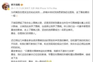 体育资讯01月15日讯 棋手战鹰发文悼念聂卫平。