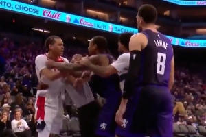 GIF-凯肖恩·乔治和德罗赞推搡发生冲突