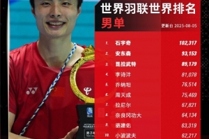 体育资讯8月5日讯 世界羽联更新了最新一期世界排名,石宇奇、安洗莹、金元昊/徐承宰、刘圣书/谭宁、冯彦哲/黄东萍继续领跑各单项第一。