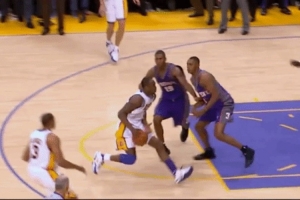 他的右手突破急停跳投和左手突破急停跳投,动作甚至全然不同 ——左手突破急停跳投比较顺势,收球即可;右手突破急停跳投时,他通常会从双脚平行起跳,空中扭转到右肩靠前(还经常要踢右腿保持平衡)。在进攻端,几乎没有他做不出来的动作。到最后,遇到不同防守,他的身体便像条件反射般转换到进攻状态,其速度之快甚至不需要调整。无论是背身单打、面筐切入、无球跑动后接球绕掩护寻求攻击,他都有无数花招可以展示。他的射程远达半场的任何地点,体能支撑每场30次甚至40次的投篮。
