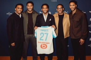 阿森纳后卫朱利安·廷伯也有亮相。值得一提的是,廷伯一家一共有5个兄弟。朱利安·廷伯和昆滕·廷伯是最小的双胞胎兄弟。他们还有3个哥哥:迪伦·廷伯、沙米尔·廷伯和克里斯·廷伯。