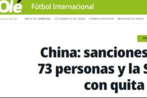 阿根廷媒体关注中国足坛假赌黑处罚:亚洲足球大国遭到了严厉制裁