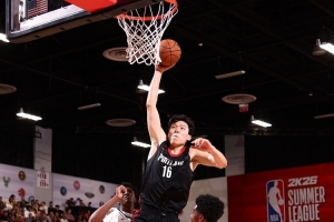“杨瀚森在进攻端的脚步相对比较干净利落。近年来,很少见到新秀大个子球员有这样的脚步技术。他的脚步动作流畅且平衡性好,这些技术细节在他的比赛中得到了充分展示。尽管每场比赛的数据大致相同,但他每次都能以不同的方式展现自己的实力,并不断丰富自己的比赛内容。从最初的几乎不打低位,到后来的低位进攻、三分投射和挡拆配合,他逐渐增加了比赛的多样性。这种发展态势我还是比较看好的。”Danny Marang表示。
