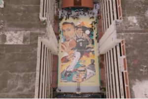 体育资讯8月21日讯 今天,美媒ClutchPoints在其官推上晒出了菲律宾一处有着库兹马巨幅画像的篮球场。