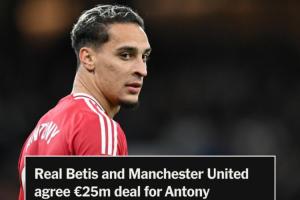 体育资讯09月01日讯 TA记者奥恩斯坦最新消息,曼联与贝蒂斯就安东尼转会达协议。