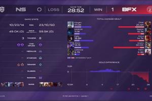 体育资讯9月5日讯 LCK入围赛胜者组BFX首局击败NS,Diable使用飞机完美表现打出全场最高伤害,领先对面AD Jiwoo芸阿娜一倍多全局伤害。