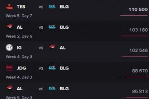 体育资讯9月5日讯 目前LPL常规赛已经结束有一段时间,海外数据网站统计了LPL在海外直播平台的收视情况。而其中收视Top5中有四场都是BLG的比赛。