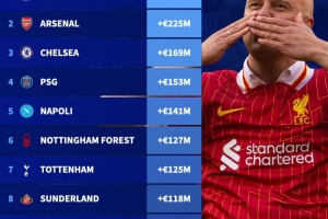 体育资讯9月5日讯 2025年五大联赛的夏窗已经落下帷幕,德国转会市场统计了在夏窗过后,全队身价涨幅最多的球队排行榜,有的是因为强援加盟,有的是因为队内球员身价上涨。
