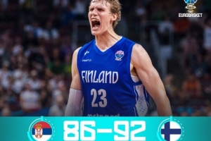 体育资讯9月7日讯 今日男篮欧锦赛1/8决赛,芬兰92-86战胜塞尔维亚。