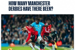 曼市德比数据:曼城62胜曼联80胜54场战平,历史首战在1891年