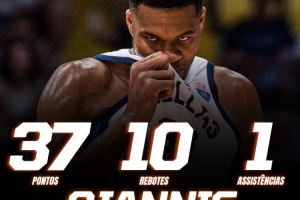 希腊球星字母哥状态炸裂,他全场出战29分钟,23中18,三分2中0,罚球2中1,狂砍全场最高的37分,外加10篮板1助攻1盖帽。