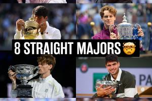 2003年出生的阿尔卡拉斯和2001年出生的辛纳包揽了过去两年的四大满贯,二人各拿下4个冠军。