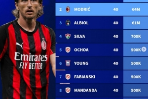 2、莫德里奇 400万欧