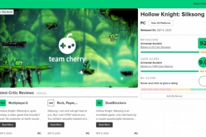 体育资讯9月10日讯 今日《空洞骑士丝之歌》在Metacritic网站的媒体评分已解禁,目前媒体平均分为92分(PC版),共有9家媒体参与评分,其中好评7条,中评1条。