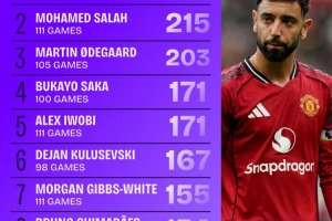 体育资讯9月11日讯 数据显示,自2022/23赛季开始,B费是英超运动战创造机会最多的球员。