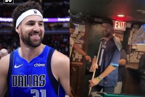 体育资讯9月13日讯 独行侠球员克莱-汤普森被拍到在一家小酒吧里打台球,对手失误没有打进黑球,克莱顺势逆转赢下比赛。