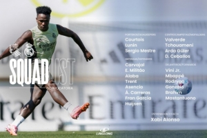 前锋:维尼修斯、姆巴佩、罗德里戈、贡萨洛-加西亚、布拉欣-迪亚斯、马斯坦托诺