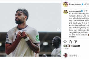 体育资讯9月13日讯 西汉姆中场帕奎塔更新社媒动态,确认自己将留在西汉姆。
