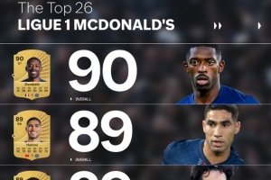 体育资讯9月13日讯 FC26公布了法甲球员评分榜,其中登贝莱居首,具体如下: