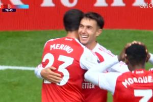 体育资讯09月13日讯 英超第4轮,阿森纳vs诺丁汉森林。比赛第79分钟,特罗萨德刚刚登场就送助攻,苏维门迪头球破门,本场双响!阿森纳3-0领先。