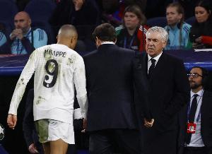 安切洛蒂:完全不是。在我看来姆巴佩就是中锋。这个位置最能发挥他的特质:速度快、技术好、敏捷性强、能在狭小空间完成闪电般配合。他需要更靠近球门。在边路他当然也能展现相同素质,但我认为进球会减少。近年足球比赛强度持续提升,边路球员的身体要求比几年前高得多。对边路球员的跑动要求总是更苛刻。因此对姆巴佩来说,踢前锋更合适。