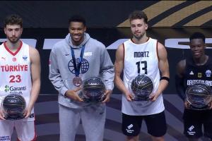 第五人是东契奇,他因为没有比赛所以提前回国了