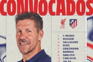 马竞客战利物浦名单:格列兹曼、拉斯帕多里在列,阿尔瓦雷斯缺席