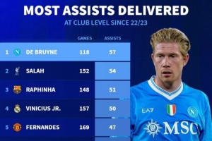 体育资讯9月19日讯 那不勒斯在昨晚欧冠焦点战客场0-2不敌曼城,迎战旧主的德布劳内因战术调整而早早被换下。不过《转会市场》统计显示,他仍然是最近3年俱乐部层面送出助攻最多的球员。