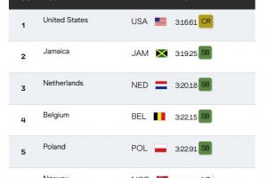 牙买加3分19秒25创赛季最佳获得银牌,荷兰3分20秒18同样创赛季最佳获得铜牌。