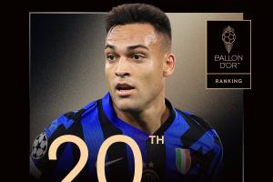 体育资讯9月23日讯 2025年金球奖排名陆续公布,国米前锋劳塔罗获得第20名,生涯第4次入选。