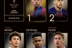 体育资讯9月23日讯 金球奖官方公布了科帕奖的最终排名顺序。