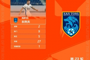 体育资讯9月23日讯 中甲联赛第23轮最佳球员公布,南通支云的外援科列夫当选。
