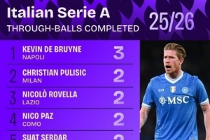 上一篇: 意甲25/26赛季创造重大机会榜:帕斯5次居首,国米三人入选