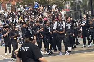 体育资讯9月28日讯 布鲁克林篮网队别出心裁,把球队训练搬到了街边公园的球场。球员们在最原始的室外场地进行训练的同时也与球迷进行互动。