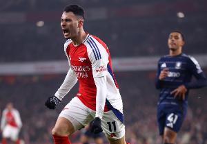 体育资讯10月2日讯 在本轮欧冠阿森纳对阵奥林匹亚科斯的比赛,马丁内利率先进球。