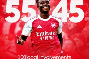 这是萨卡英超第200场里程碑之战,同时也是萨卡英超参与进球数第100个。