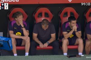 体育资讯10月6日讯 慢镜头给到莱万罚点瞬间,弗里克低头不敢看,随后莱万离谱打偏!