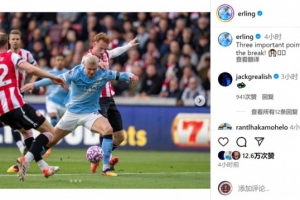哈兰德社媒晒出比赛照片庆祝胜利,配文:“重要的三分,咱们休赛期之后见!”