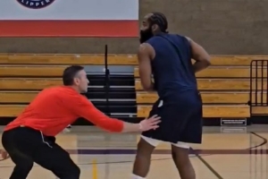 体育资讯10月10日讯 据快船随队记者Farbod Esnaashari报道,快船球星哈登今日在球队训练后一个人加练。